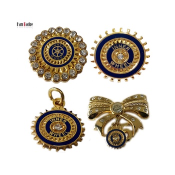 Custom Inner Wheel Pin With Diamond Stones Brass Hard Enamel Badges 24K Gold Plating